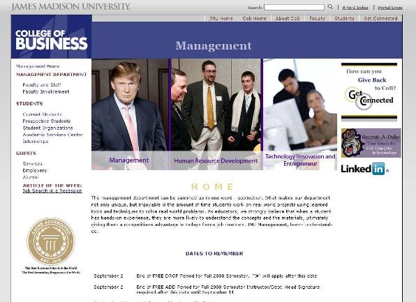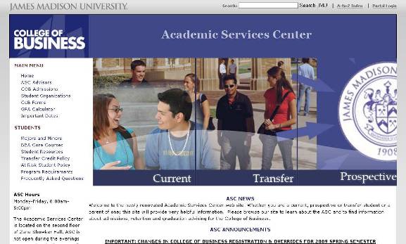 An entry into the JMU Management redesign competition. Also a first place winner with similar theme as the ASC site